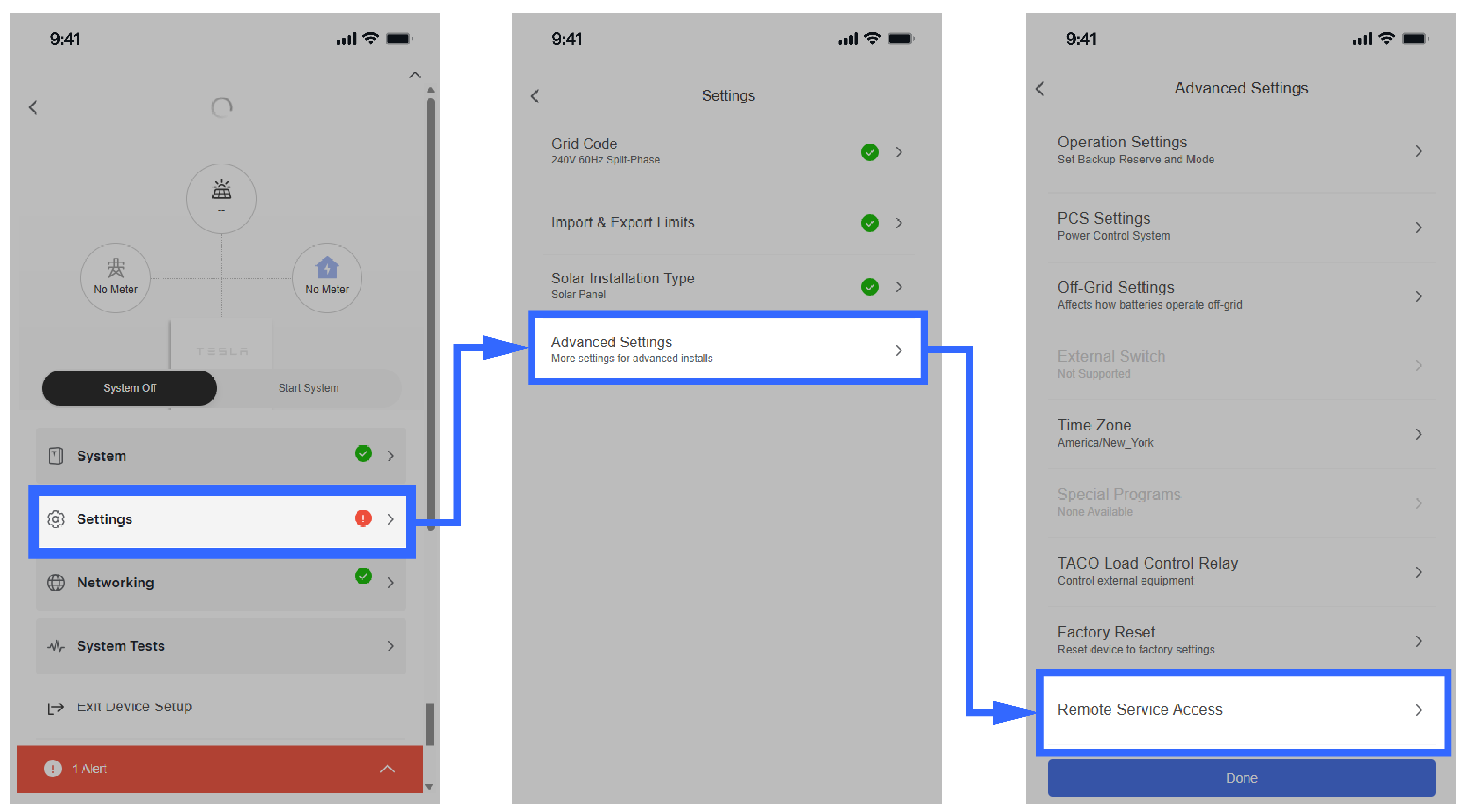 When needed, Remote Service Access can be enabled, allowing remote support personnel to change system settings and/or troubleshoot the system directly. For more information about Remote Service Access, see the Residential Powerhub User Manual.