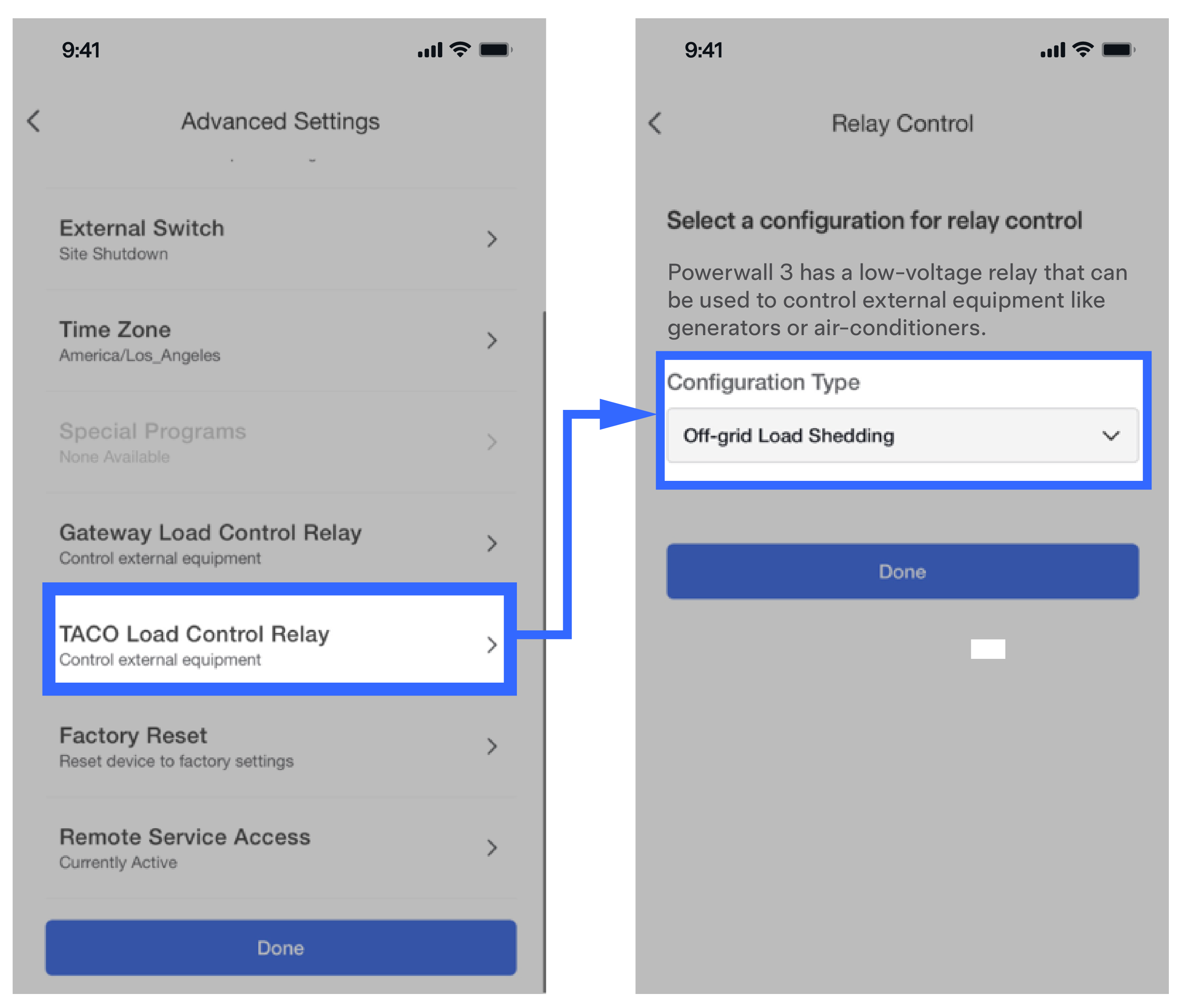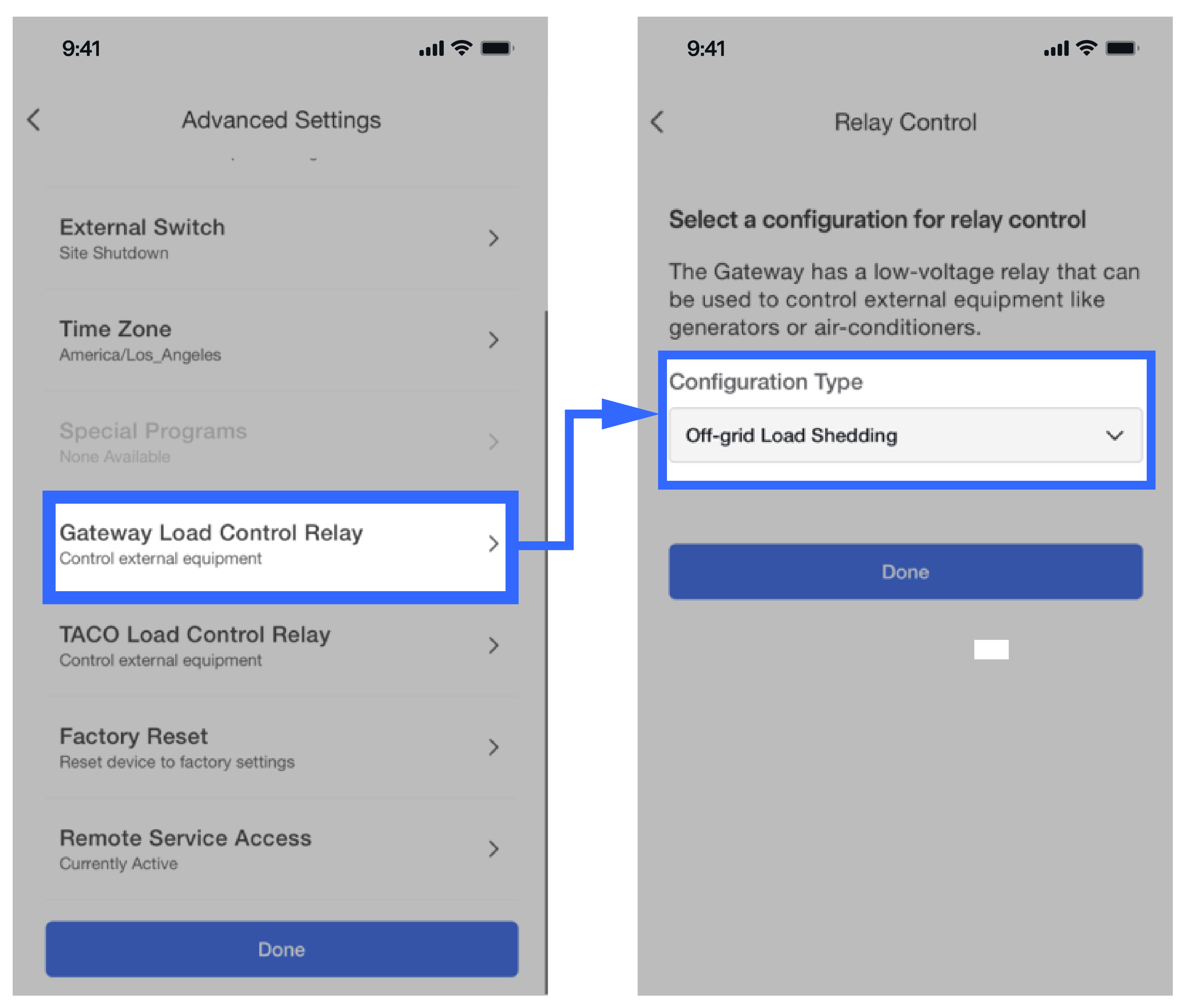 - In the Configuration Type dropdown menu, select Off-grid Load Shedding.
