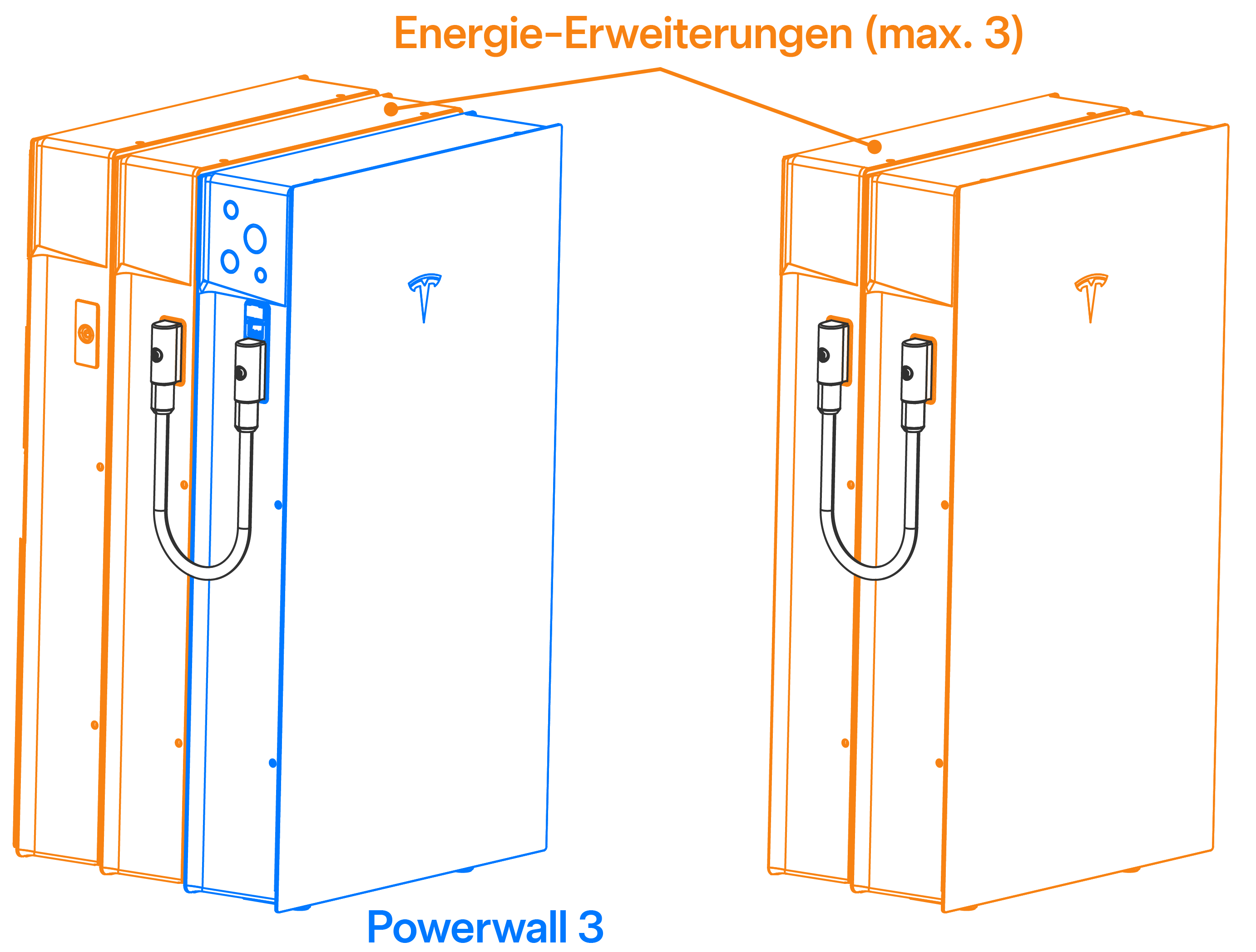 - Legen Sie anhand der Anzahl der Geräte fest, wo die Expansion (Erweiterung)- und Powerwall 3sgeräte installiert werden sollen: