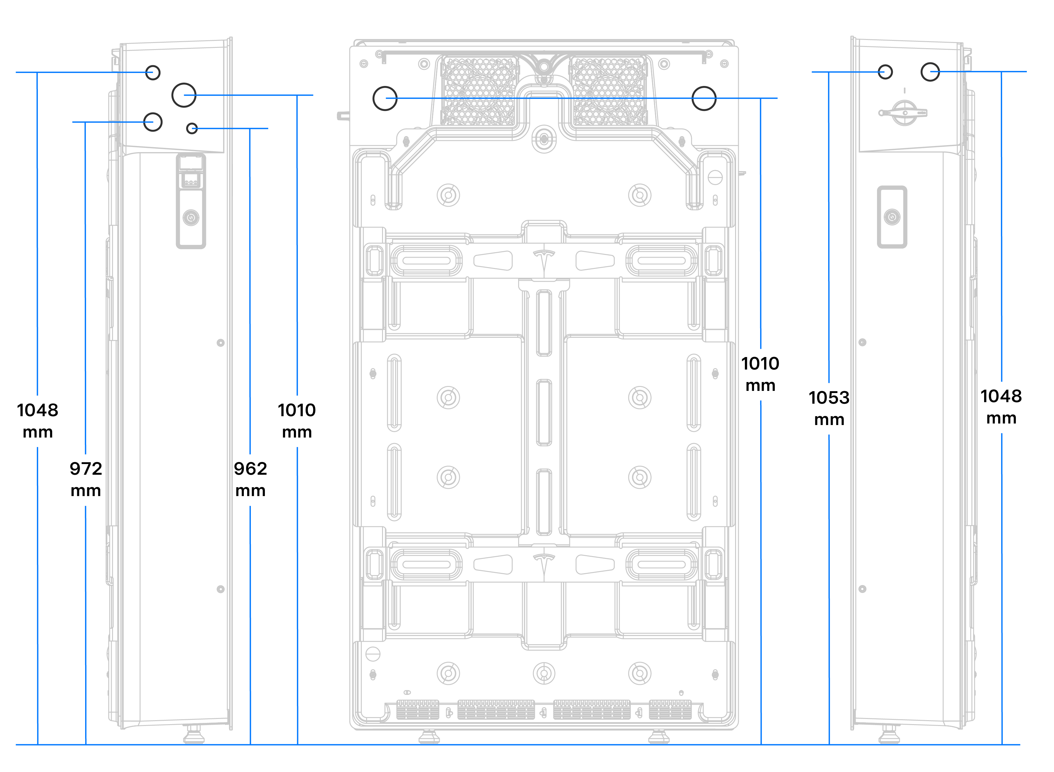 Abbildung 1. Powerwall 3 Positionen der vorgestanzten Ausbrüche