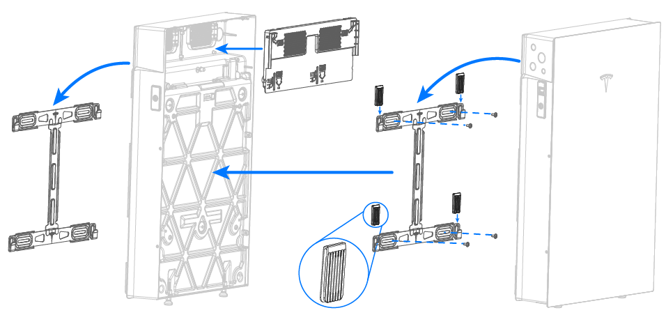 - Once all Expansion units have been installed, repeat step 12 to mount the Powerwall 3 to the front of the stack.