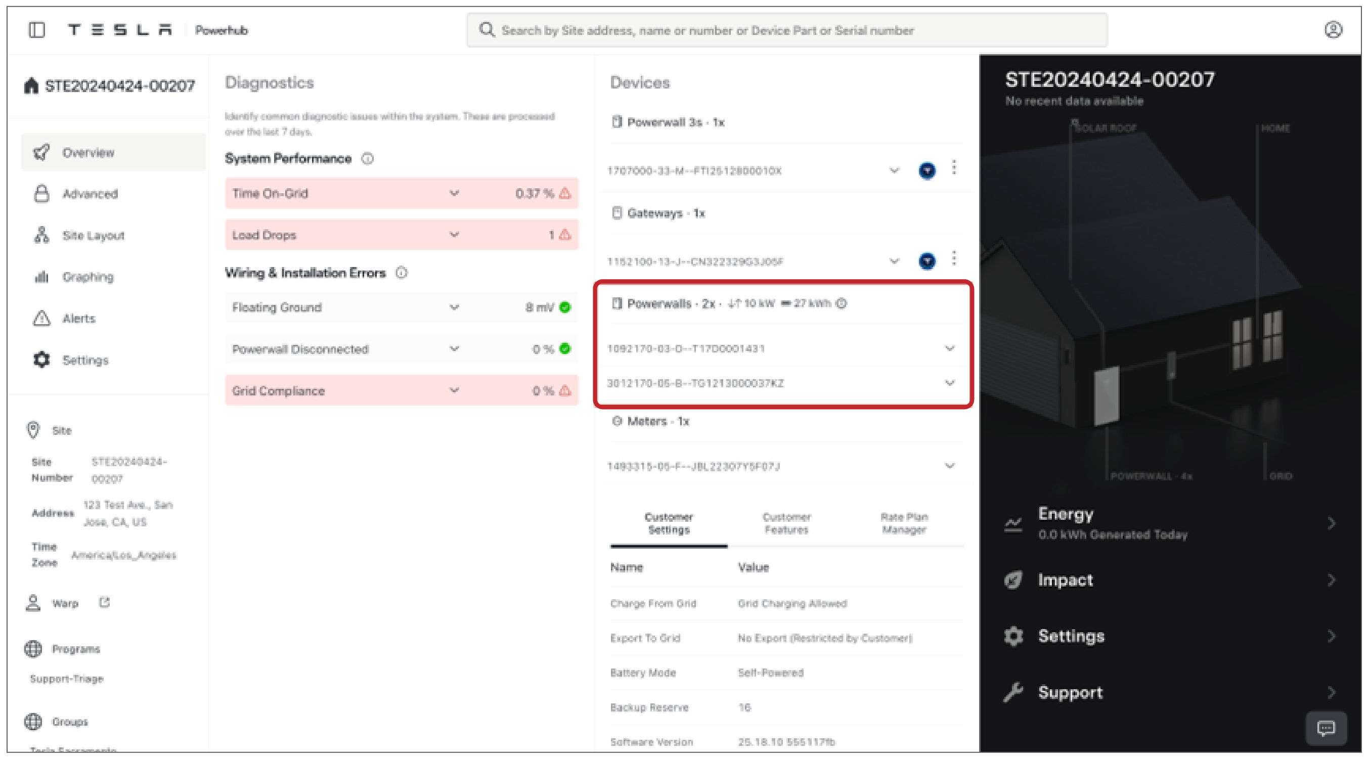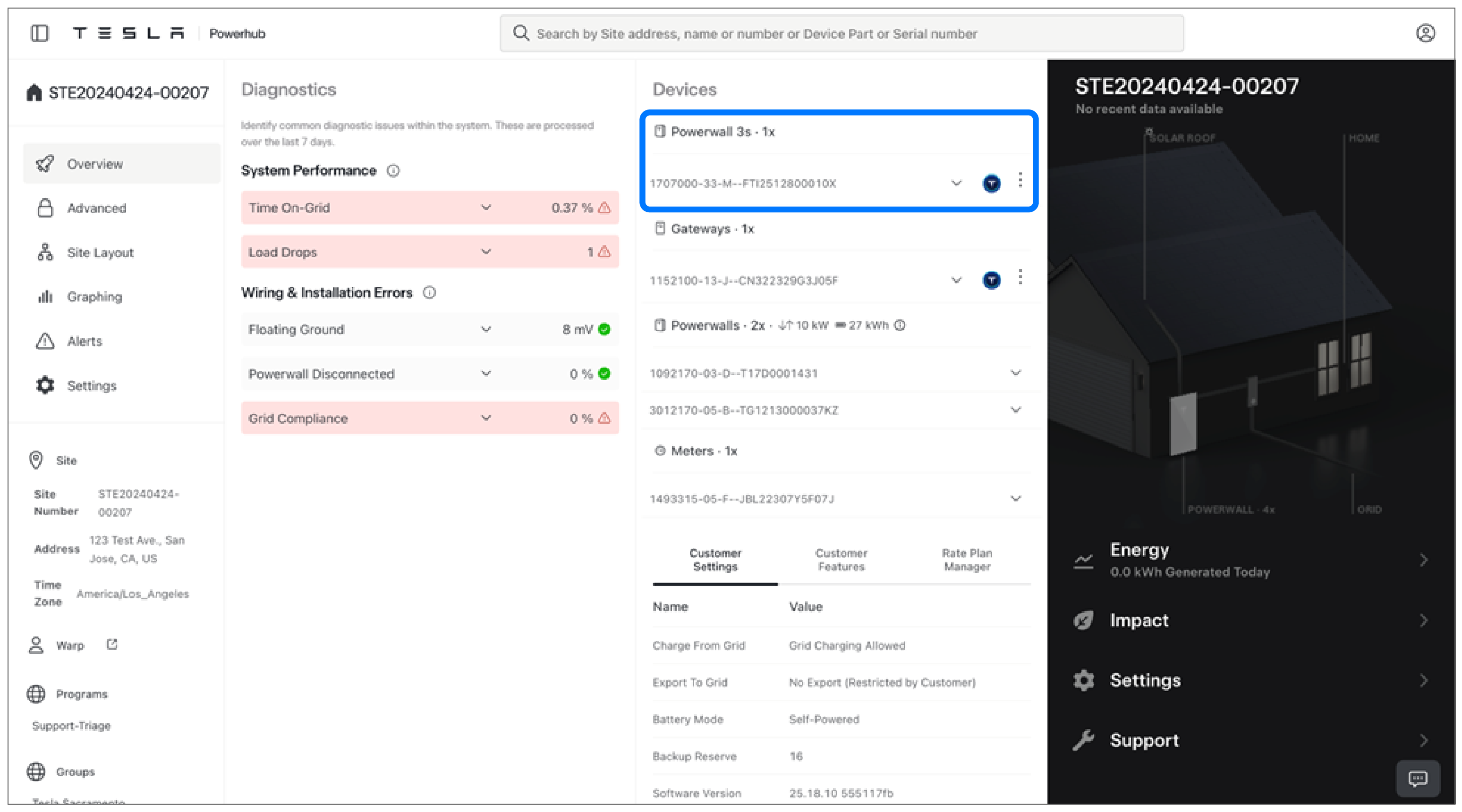 - Note that Powerhub and the customer's Tesla App will not display data (telemetry or settings info) from the new Powerwall 3 right away. This data will appear after the overnight sync
