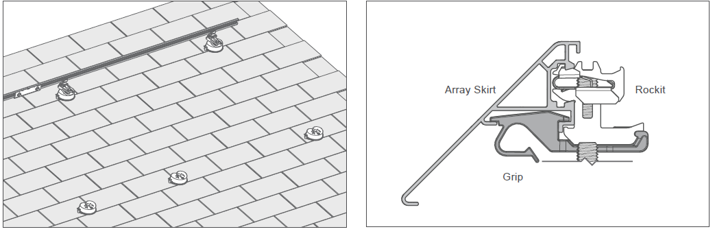 At the rear edge of the module, install Key side of the Rockit into the Zep Groove of the module frame.