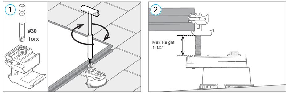 Rotate the threaded stud using a #30 Torx bit or Zep Tool to raise or lower module attachment points. (1)