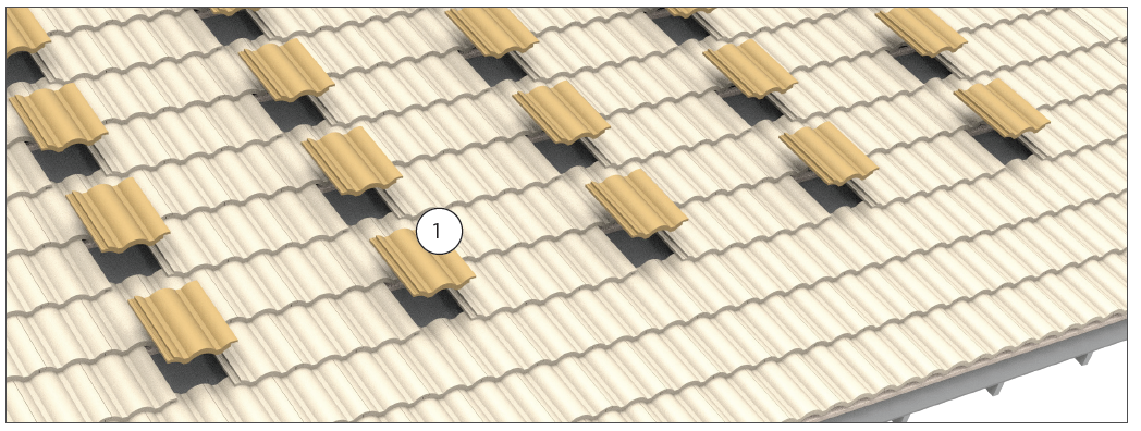 Preserve tiles for later re-installation. (Roof sheathing not shown).