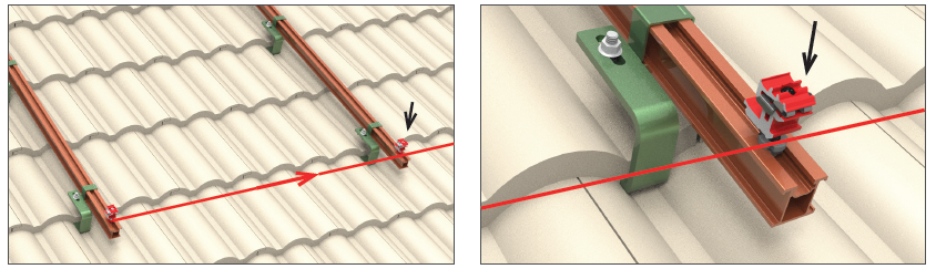 Use String Line to Align Middle Spanner Bars and Cam Feet. Place string line on front side, just below the Rockit, on the two outermost Cam Feet. Slide middle Spanner Bars into position until Cam Feet threaded studs meet string line.