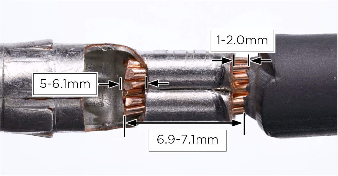 a correct crimp. Dimensions are in accordance with example manufacturer guidelines: