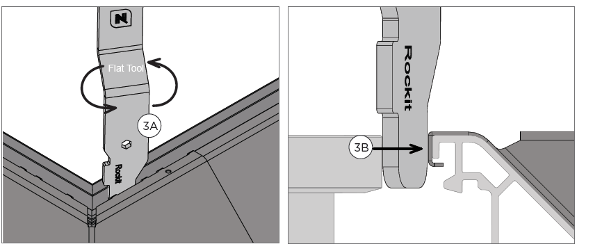 between the module frame and the Corner Cap (3A) and twist gently to fully