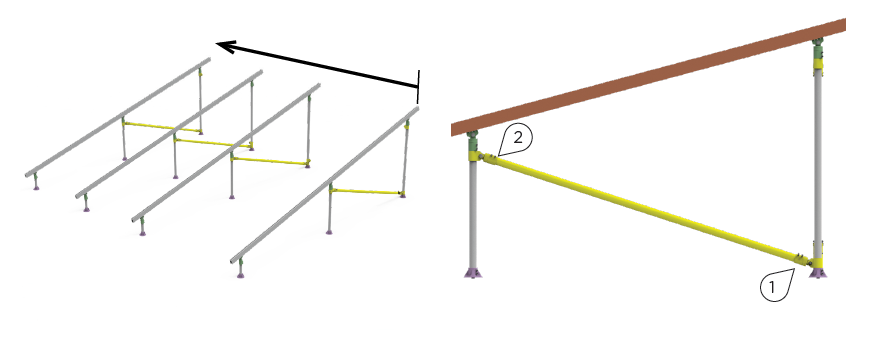 East-West Bracing. The mounting sequence is at the lower end first (1), followed by