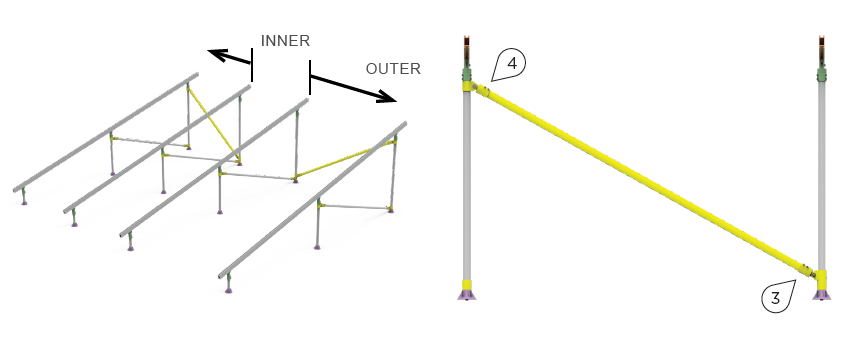 Bracings. Begin installation at an inner row of MTs (3), followed by the outer end