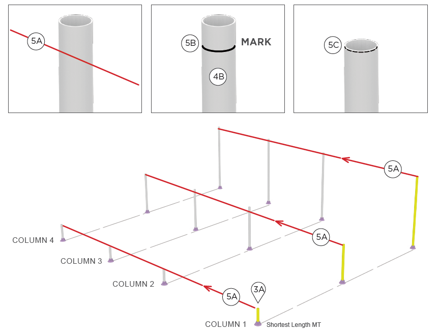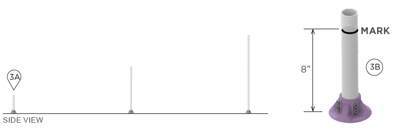 Select the starting Mechanical Tubing (3A), which will be a short-length Mechanical Tubing at the highest elevation on the roof. Use a Measuring Tape to measure out the height specified in project plan set (3B). In case of uneven roof surfaces, begin with the short-length MT at the highest point on the roof.