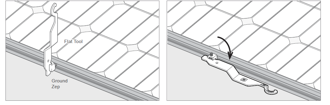 Using either a Zep Tool or the Flat Tool (shown), lock the Ground Zep into place with a 90 degree clockwise turn.