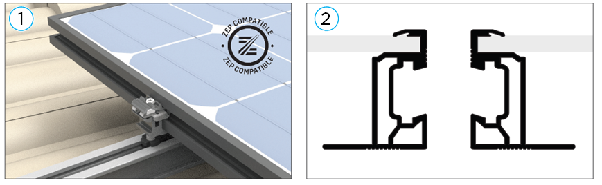 Tesla ZS mounting solutions are based on the Zep Groove, a patented module frame profile designed to mate easily and precisely with Tesla ZS components, creating a simultaneous structural and electrical bond with simple drop-in and precision quarter-turn connections. Zep Compatible™ PV modules are certified by Tesla to work exclusively with ZS mounting hardware.